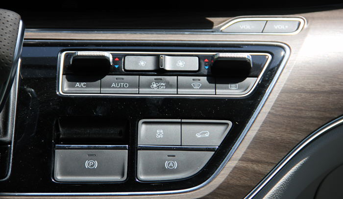方向盘左侧布置了后排双电动车门的开关,后备箱开启按钮等功能按键,简单易操作。电子档杆紧邻中控屏下方,这也是不少MPV所采用的布局方式,空调控制除了在大屏中操作外,还可以通过挡杆右侧的实体按键进行风量和温度的调整。