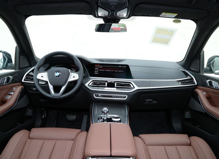 内饰方面跟全新宝马X5的风格非常近似,几处亮点值得留意,分别是12.3英寸全液晶显示的仪表盘、搭载了iDrive7.0系统的,依旧支持语音、触摸和手势多种操控方式的中控屏幕、可制冷/加热的杯架、香氛系统以及水晶质感的挡把。宝马X7在音响方面也做足了功夫,新车配备有1500W功率的20个扬声器,比新7系多出4个。而作为家族中最大的SUV车型,宝马X7采用了三排座椅布局。标配的是2+3+2布局方式。配置方面,新车将会配备激光大灯、三片式全景天窗、三排座椅全部配备座椅加热、双12.3英寸液晶屏、全景影像、驾驶模式选项、空气悬架、自动启停、陡坡缓降及电子手刹等。 在安全配置上,宝马X7还将搭载驾驶辅助系统,可提高舒适性和安全性;标配:带制动功能的巡航控制系统、城市安全、行人/骑车人警告功能、主动巡航控制系统、停车距离控制(PDC)。