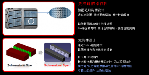 在花纹上,锦湖轮胎对中国道路有着独特的理解和运用。针对轿车用户的威冬驰WI61,采用毛细沟槽设计,其优势在于显著增加与路面的接触面积,以增强轮胎在遇到冰冻路面时的操控性。同样是为了应对冬季较常出现的雨雪天气,威冬驰WI61胎面为3D沟槽,同时辅以非对称花纹,因此排水性能异常突出,在湿滑路面上的摩擦力及接地性尤为出众。
